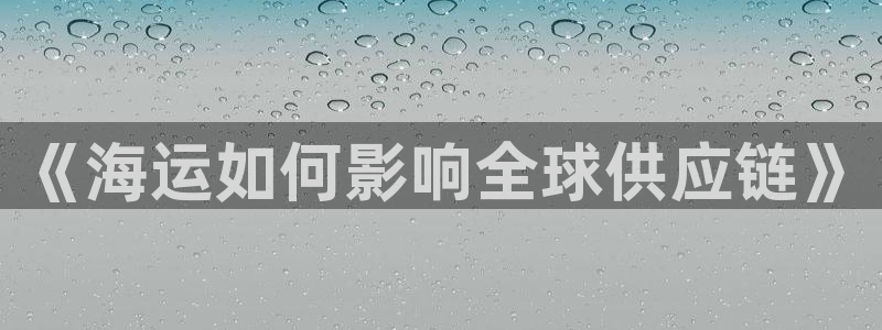公海赌博怎么处理:《海运如何影响全球供应链》